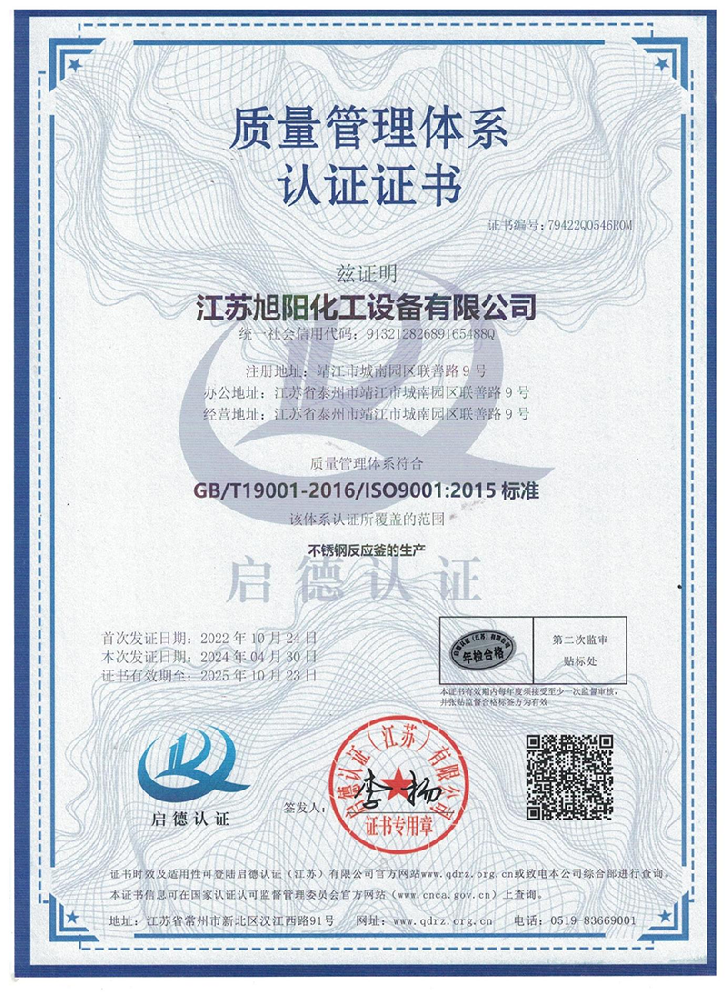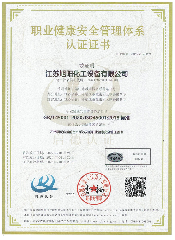 江蘇旭陽化工設備有限公司專業從事各類化工、環保、制藥、發酵、食品、新材料、鋰業等項目設計、制造及壓力容器的生產制造,是一家集研發、生產和進出口貿易于一體的高科技企業。